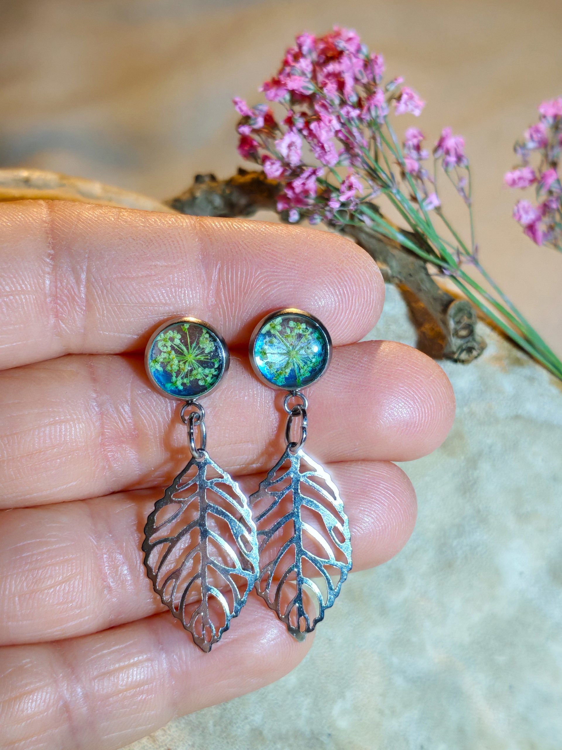Stainless steel uhani s pravimi cvetlicami.