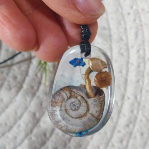 In tako Moja Ovčka in Gobji mož skupaj raziskujeta svet in sestavljata mali mikro svet rastlin in gobic v kos nakita.