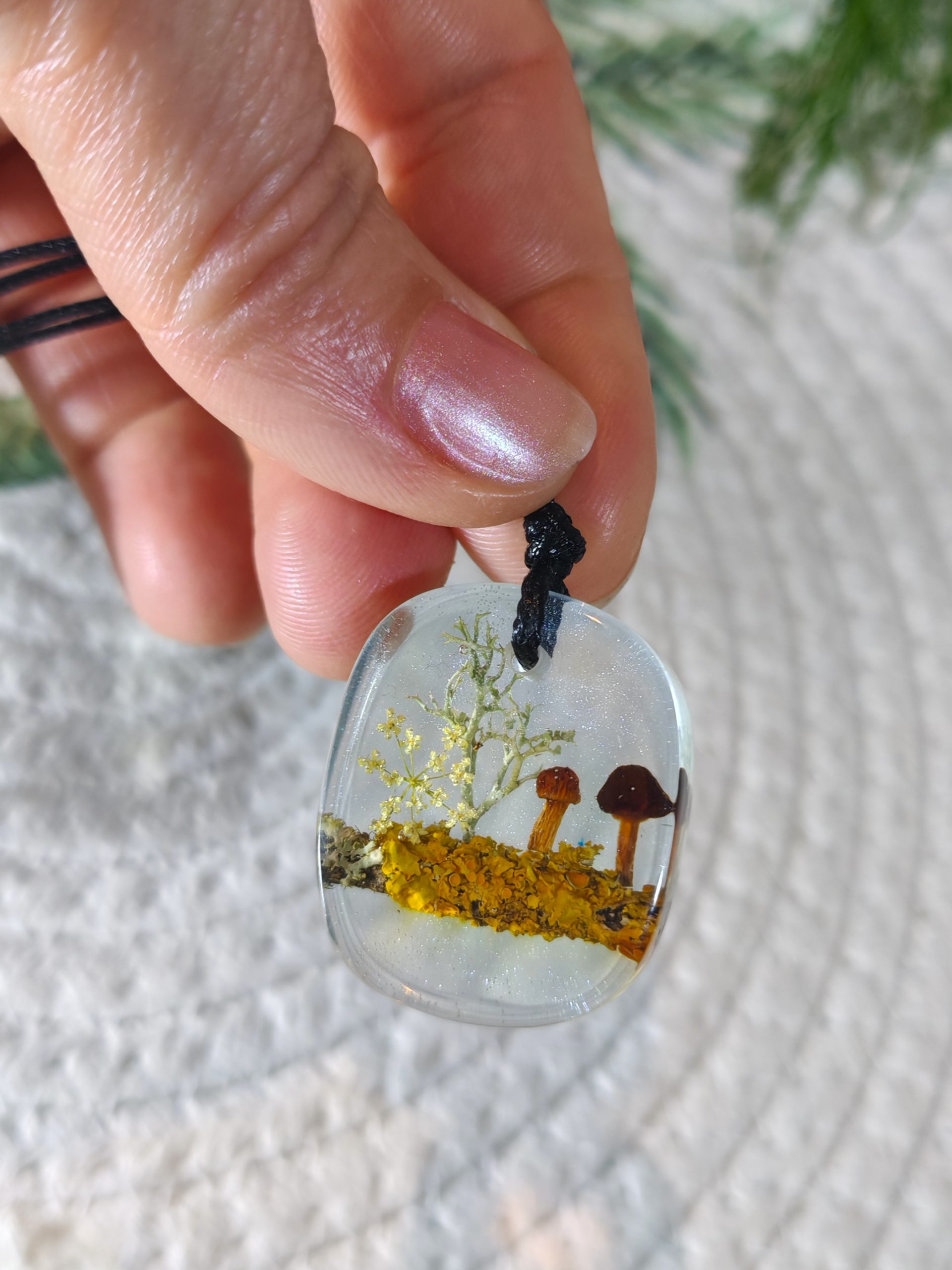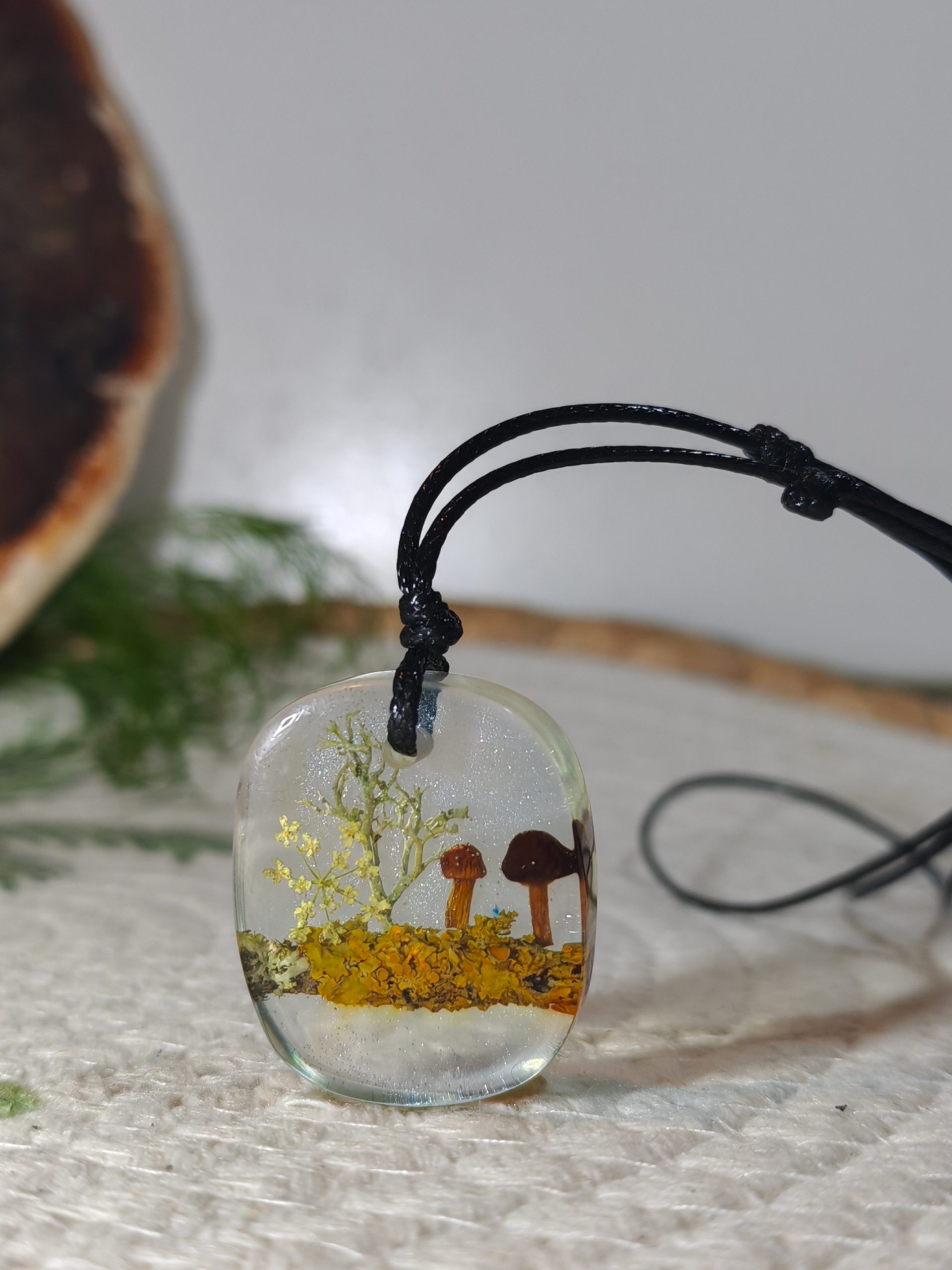 In tako Moja Ovčka in Gobji mož skupaj raziskujeta svet in sestavljata mali mikro svet rastlin in gobic v kos nakita.