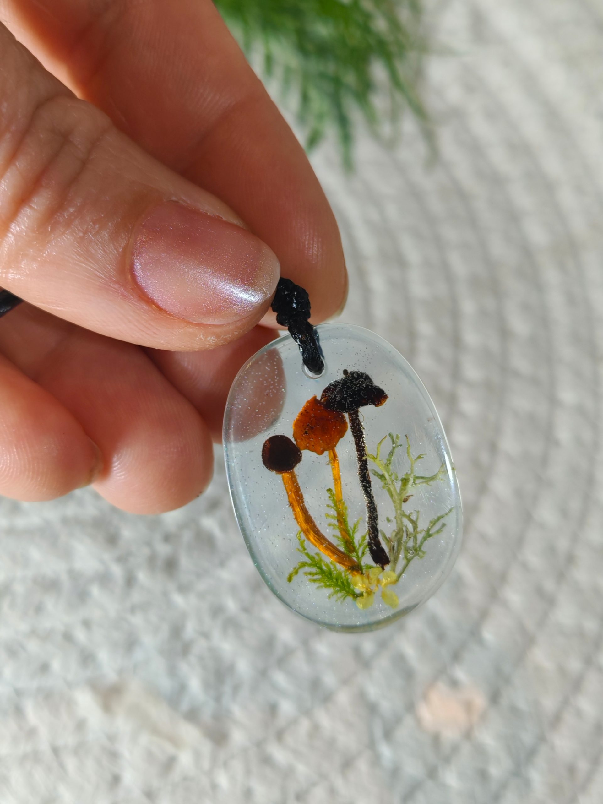 In tako Moja Ovčka in Gobji mož skupaj raziskujeta svet in sestavljata mali mikro svet rastlin in gobic v kos nakita.